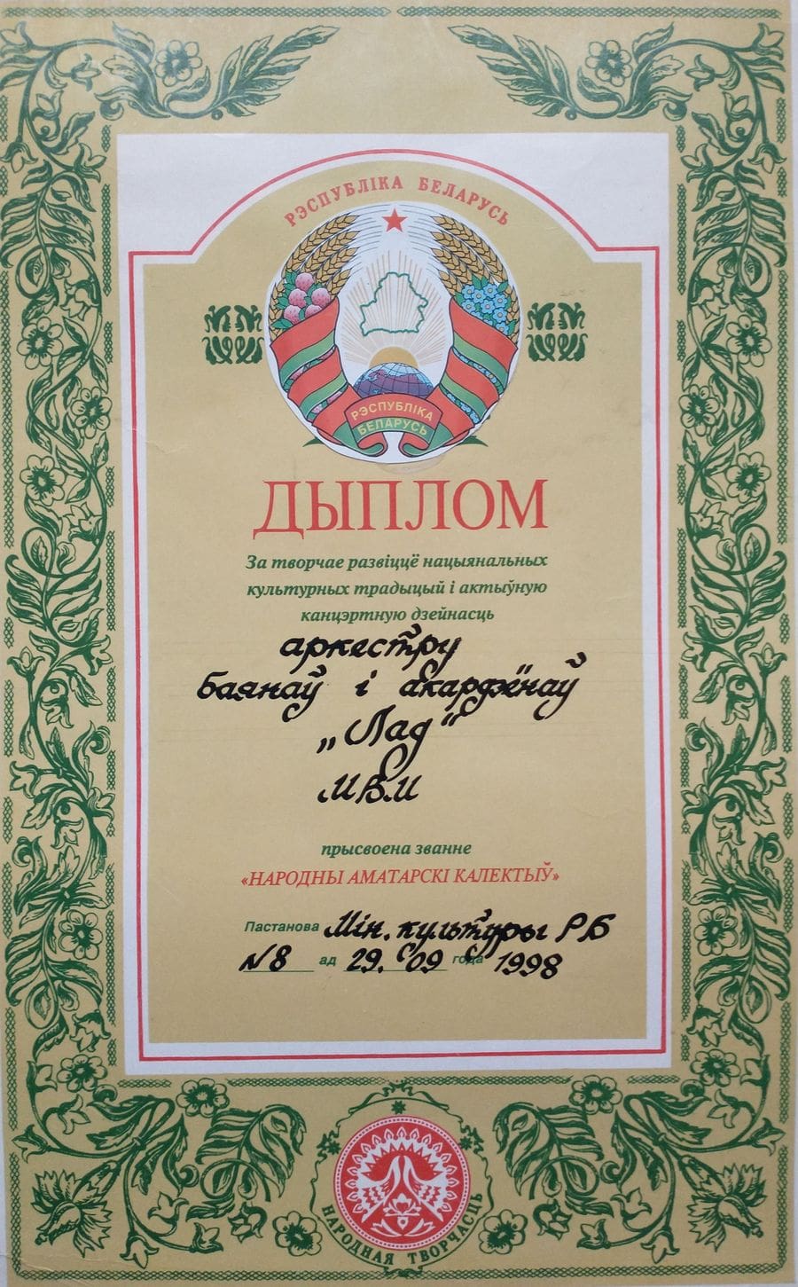 ОРКЕСТР БАЯНИСТОВ И АККОРДЕОНИСТОВ «ЛАД» [руководители: Николай Колосов (1992), Владимир и Галина Артимовичи (1993-2000), Галина Молодых (2000-2020)]