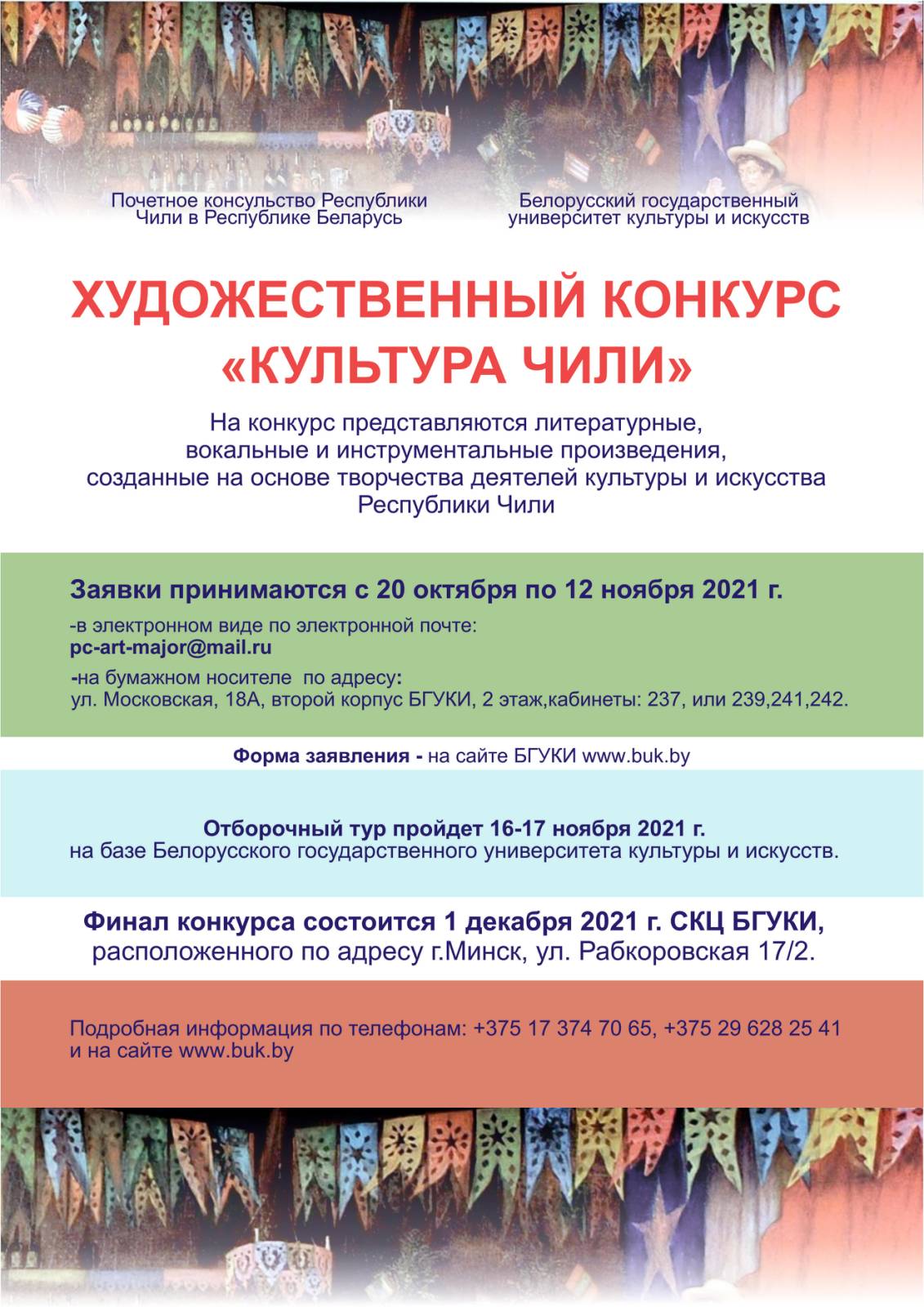 Организатор конкурса – УО «Белорусский государственный университет культуры и искусств» при поддержке Почётного консульства Республики Чили в Республике Беларусь.