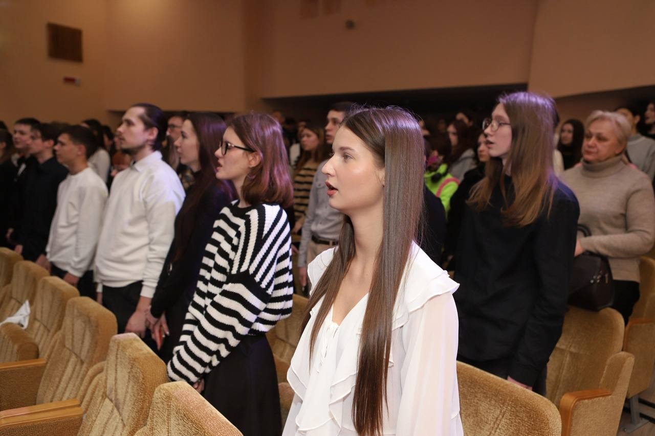 Формат диалога поколений позволил участникам акции не только исполнить тематические композиции, но и поделиться личными историями о Героях своей семьи, пообщаться с молодежью.