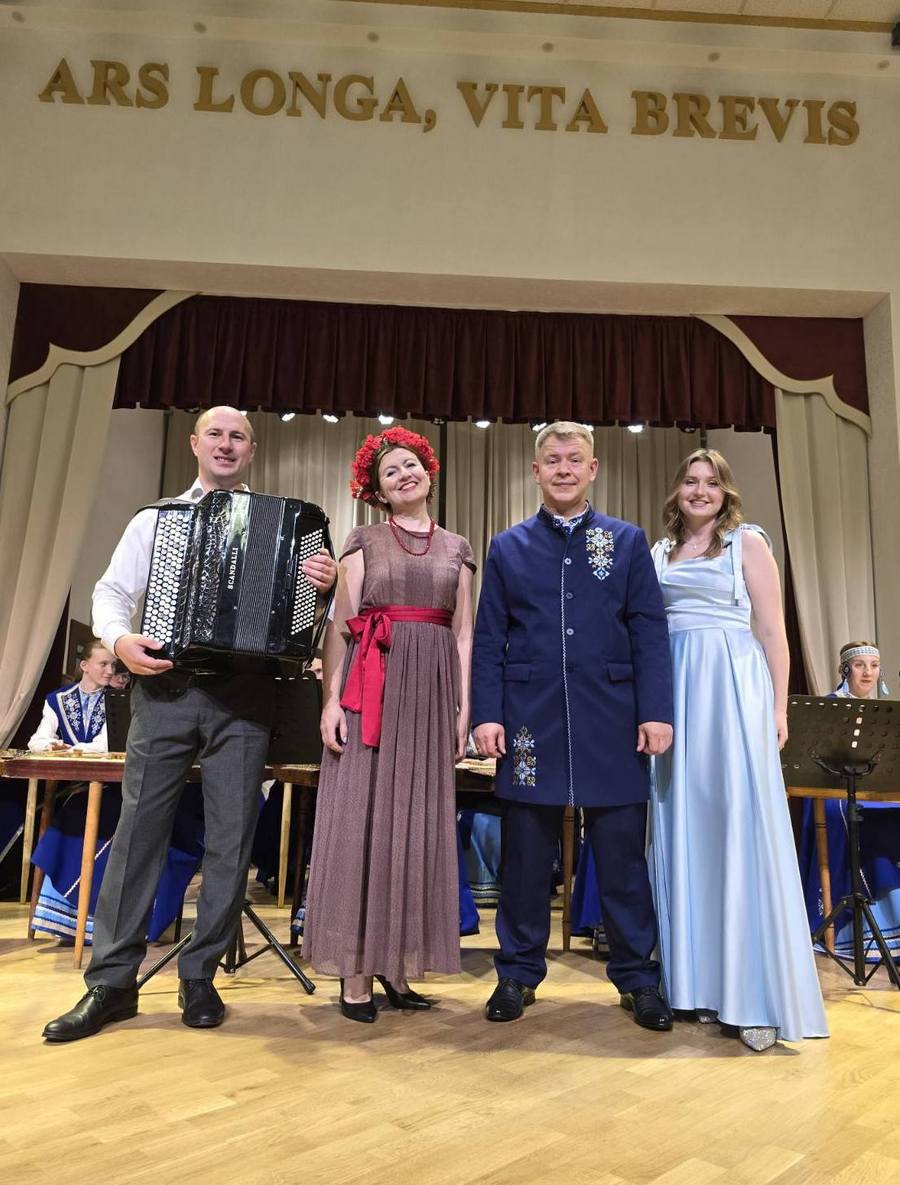 После торжественной части состоялся праздничный концерт Заслуженного любительского коллектива РБ цимбального оркестра «Лира» под руководством Стельмаха Д.Г. Солисты: Заслуженный артист Беларуси, преподаватель Плиговка В.Н., лауреат международных конкурсов Марина Анкудо, солистка оркестра Государственного академического ансамбля танца Беларуси, выпускница колледжа Алеся Адамчик, учащийся III курса специальности «Искусство эстрады (пение)» Александр Яновский.