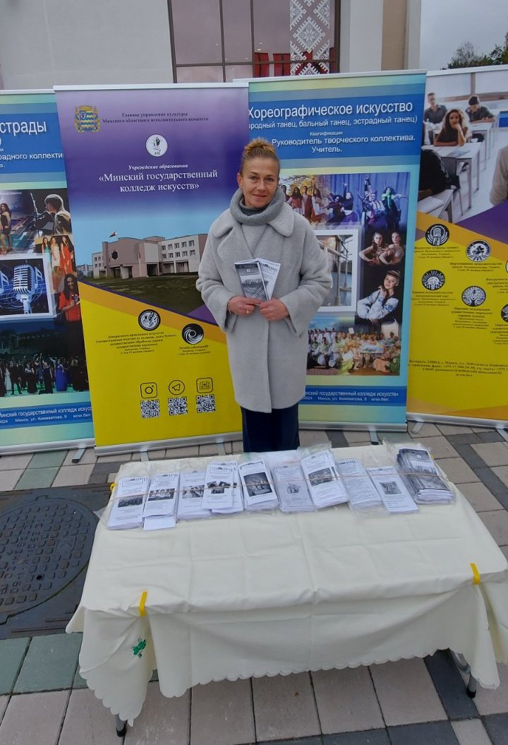 Локацию Минского государственного колледжа искусств на ярмарке представила преподаватель О.С.Быстрицкая. В ходе мероприятия посетители выставки – потенциальные абитуриенты нашего колледжа – смогли получить консультации по ряду важных вопросов: