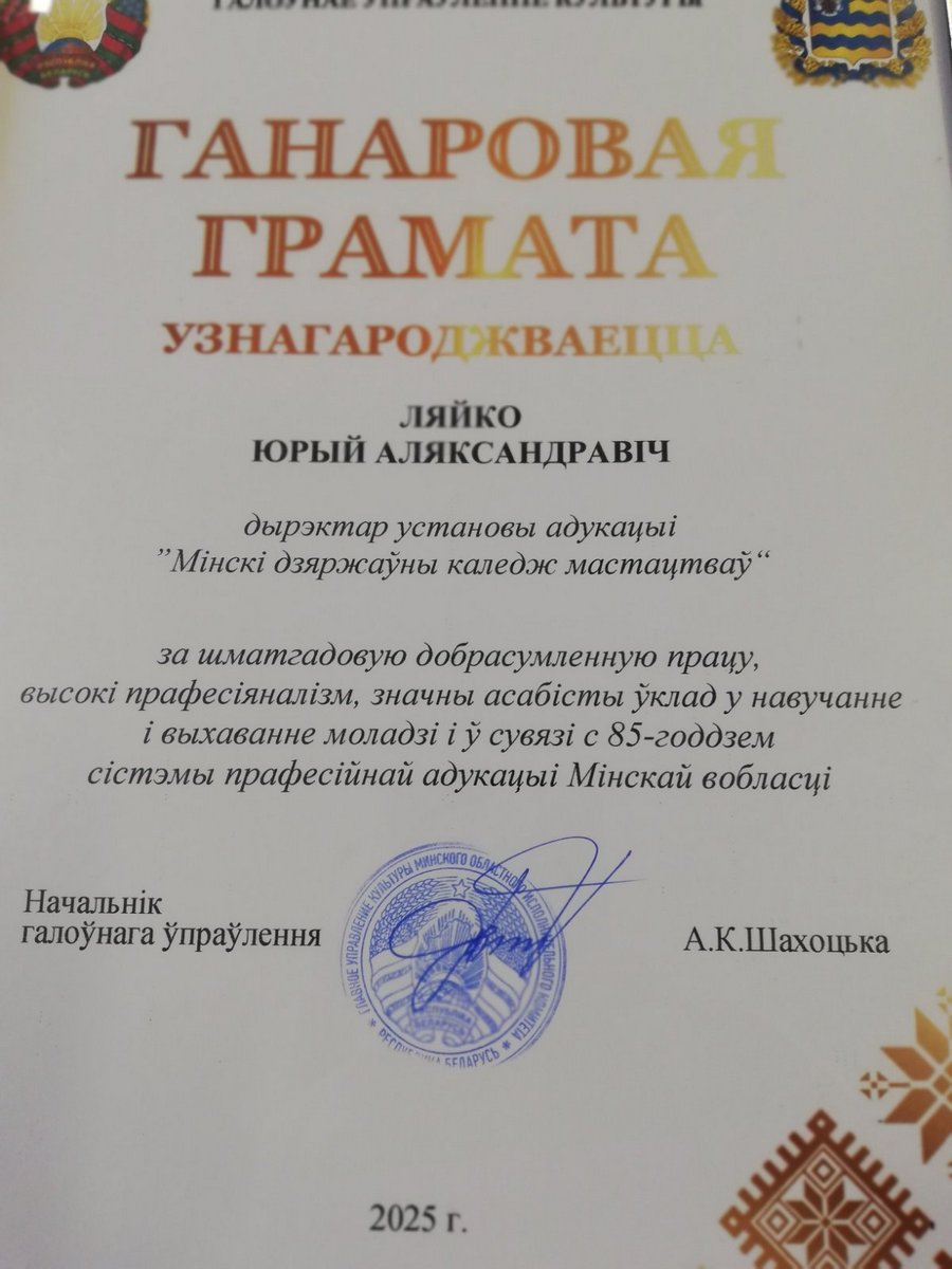 ПОЗДРАВЛЯЕМ директора УО «Минский государственный колледж искусств» Юрия Александровича ЛЕЙКО