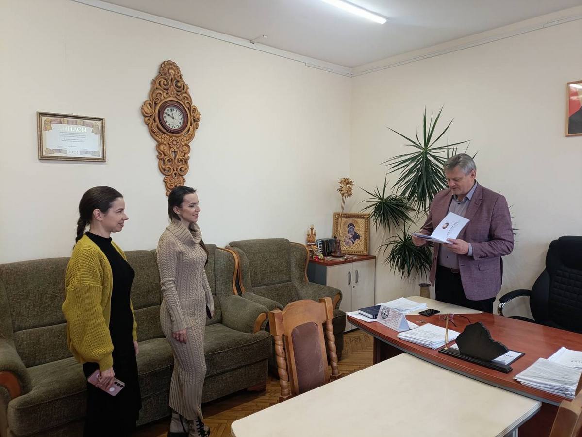 Директор колледжа Юрий Александрович Лейко лично, в торжественной обстановке, вручил свидетельства руководителям коллективов – Кулагиной Ирине Олеговне и Процко Елене Сергеевне.