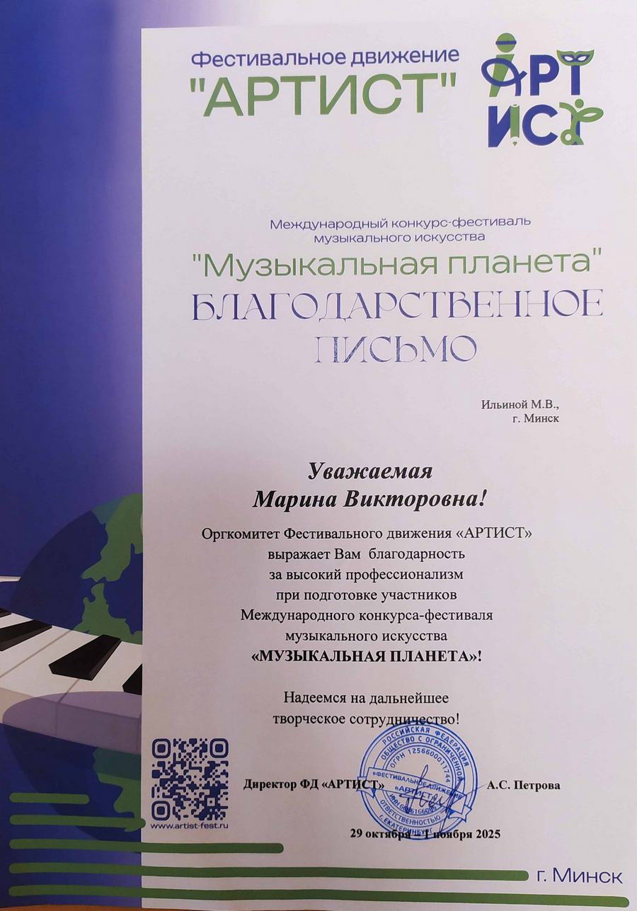 Выражаем искреннюю благодарность преподавателю Марине Викторовне Ильиной за высокий профессионализм и терпение, проявленные в процессе подготовки ребят.