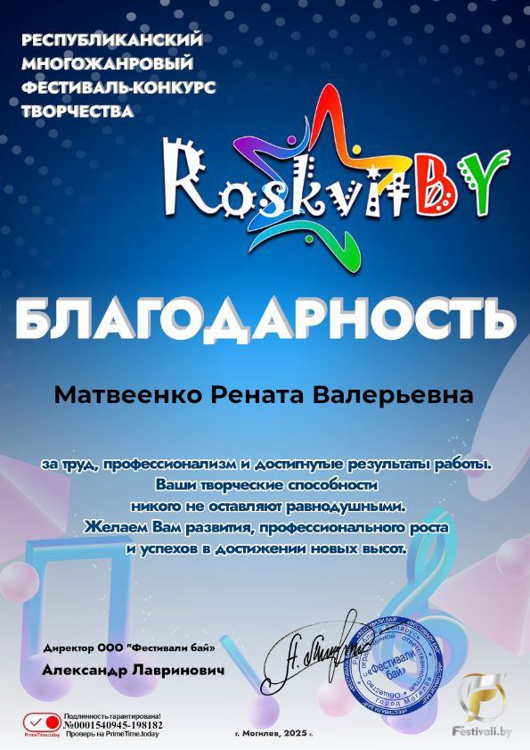 онлайн фестивале-конкурсе творчества «RoskvitBY» (2025, г. Могилёв)