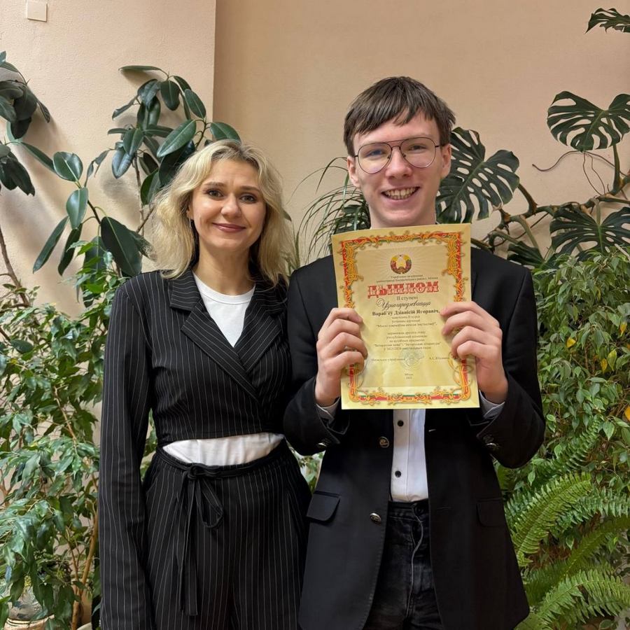 Віншуем таленавітага навучэнца і яго выкладчыцу па беларускай мове і літаратуры Юлію Васільеўну Жук! Зычым Дзіанісію поспехаў на ІІІ этапе алімпіяды!