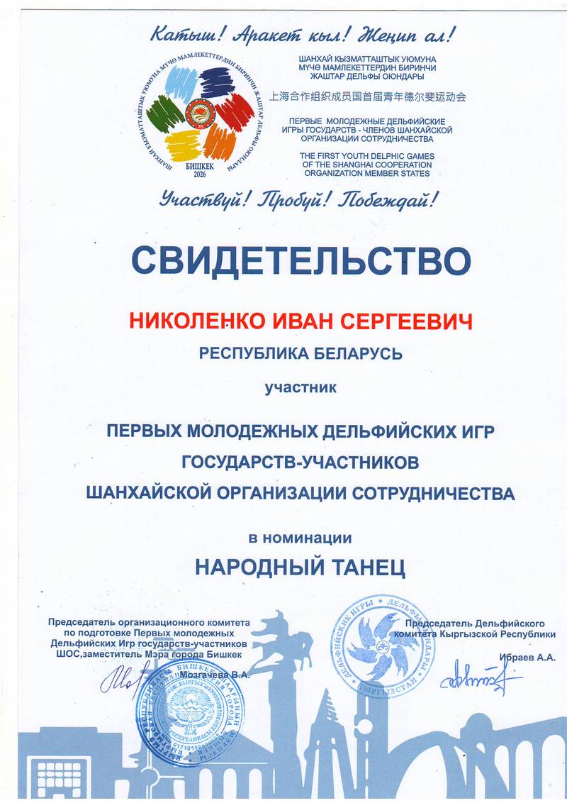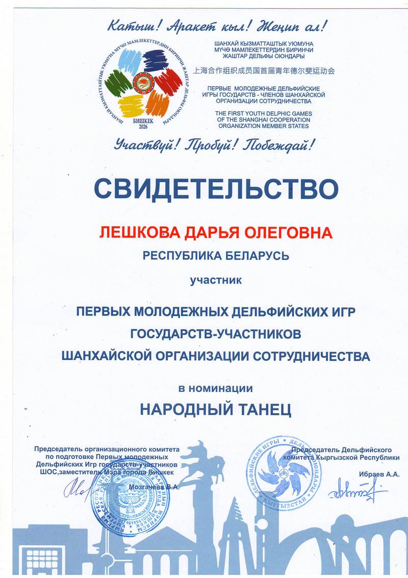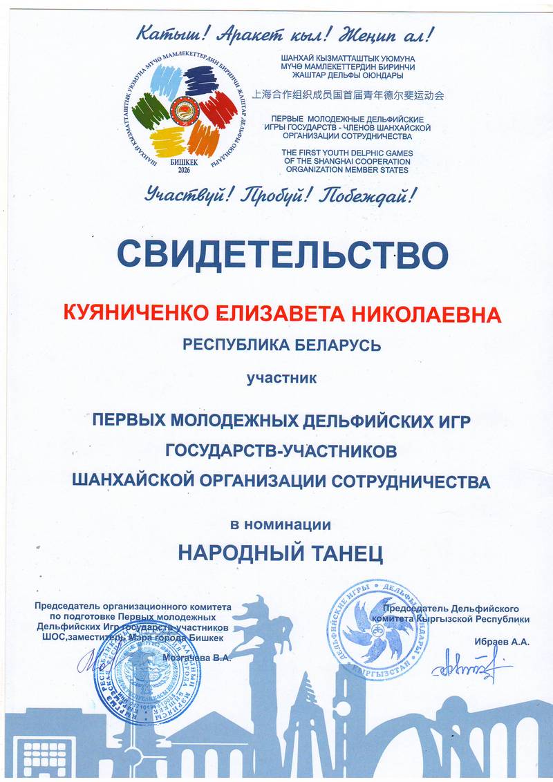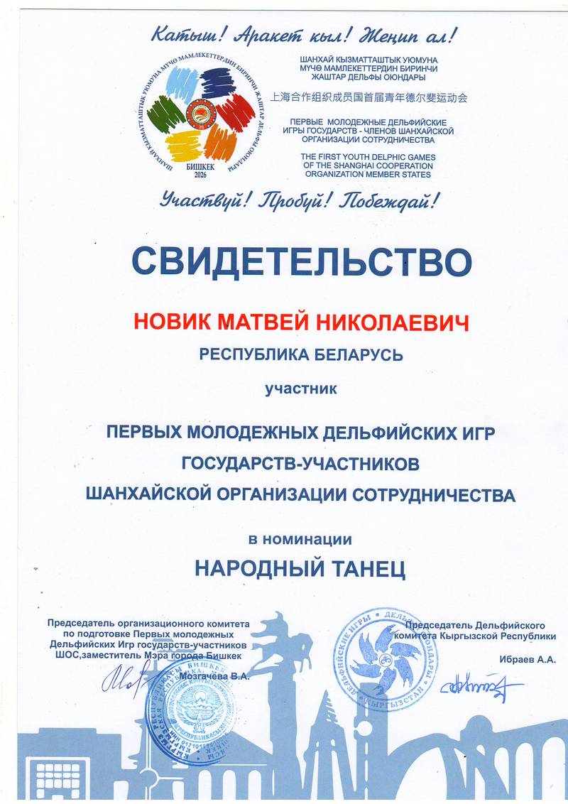 ПОЗДРАВЛЯЕМ ПОБЕДИТЕЛЕЙ Первых молодежных Дельфийских игр государств – членов Шанхайской организации сотрудничества (23-28 марта 2026 г., Бишкек, Кыргызская Республика):