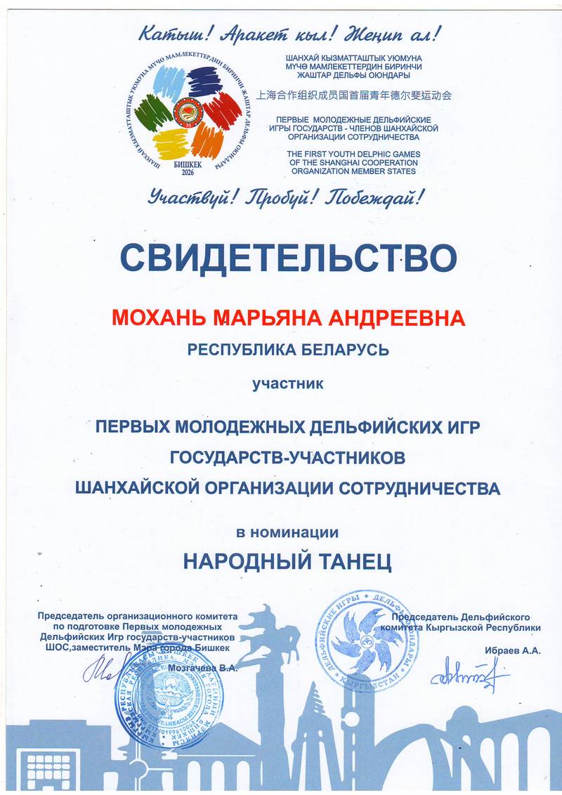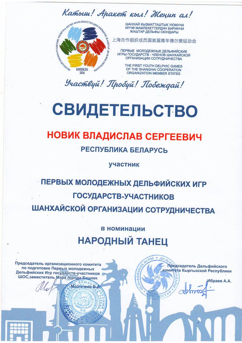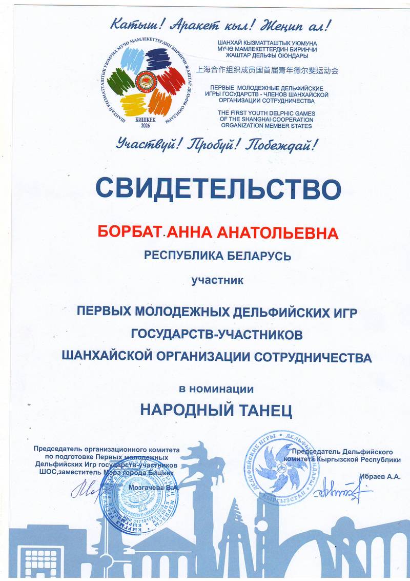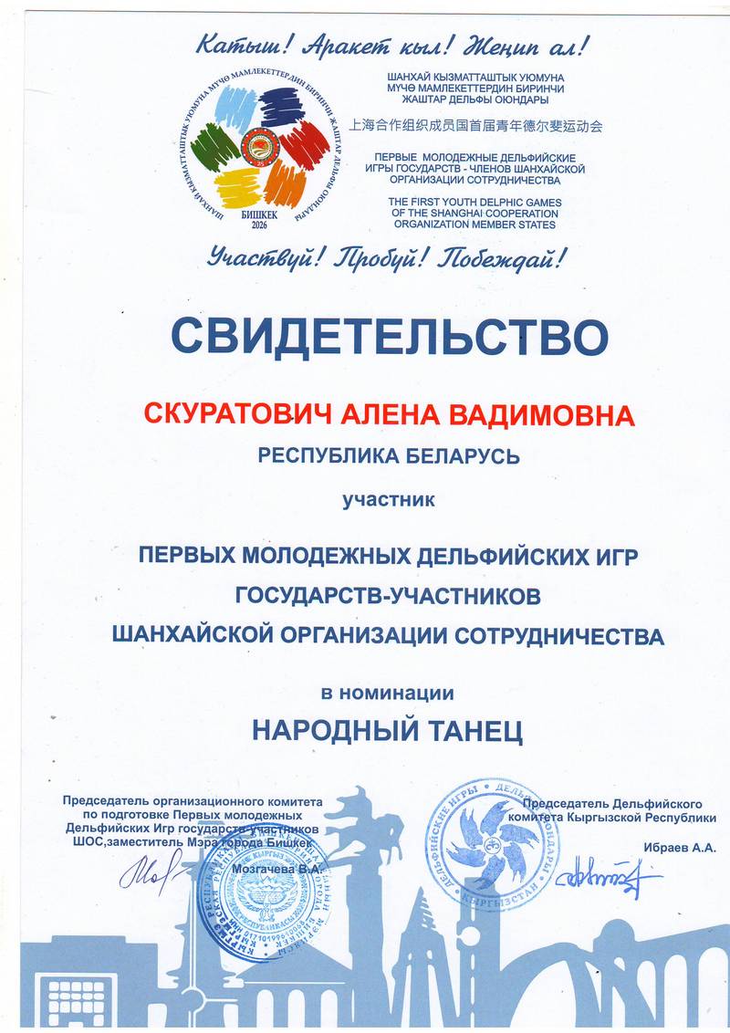 ПОЗДРАВЛЯЕМ ПОБЕДИТЕЛЕЙ Первых молодежных Дельфийских игр государств – членов Шанхайской организации сотрудничества (23-28 марта 2026 г., Бишкек, Кыргызская Республика):