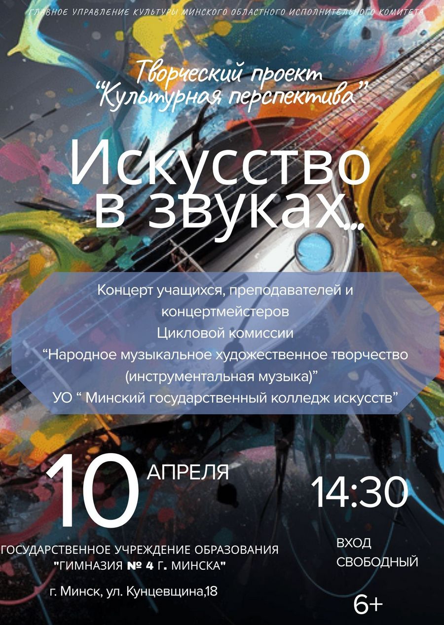 У пятніцу 10 красавіка 2026 г. ў вялікай зале ДУА «Гімназія №4 горада Мінска» адбылася творчая сустрэча навучэнцаў і адміністрацыі гімназіі з прадстаўнікамі УА «Мінскі дзяржаўны каледж мастацтваў».